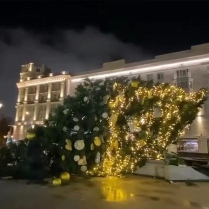 У центрі Москви ялинка, яка впала, нещодавно виглядала саме так. Фото: соцмережі.