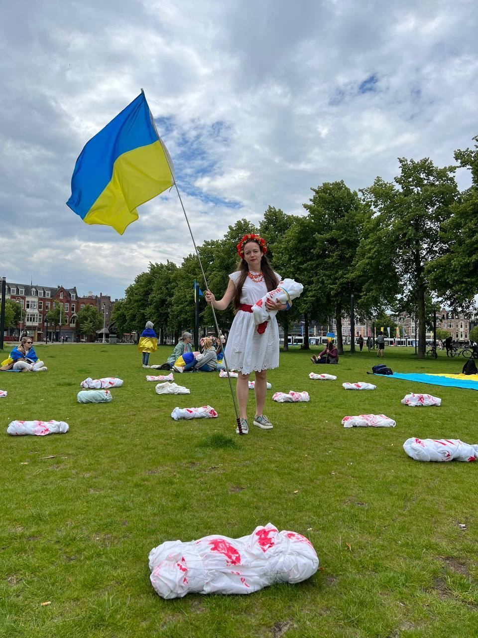 Марш матерів в Амстердамі відбувся на Музейній площі біля меморіалу Women of Ravensbrück, що вшановує памʼять понад 90000 жінок та дітей, більшість з яких за 6 років Другої світової війни загинуло від голоду, медичних експериментів та у газових камерах. Учасницями Маршу матерів також була зроблена жива інсталяція у пам'ять про загиблих у війні з Росією українських дітей.