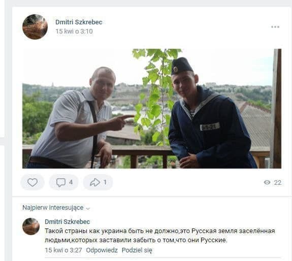 Зазначимо, що раніше Дмитро Шкребець писав у соцмережах, що такої країни, як Україна "не повинно бути".