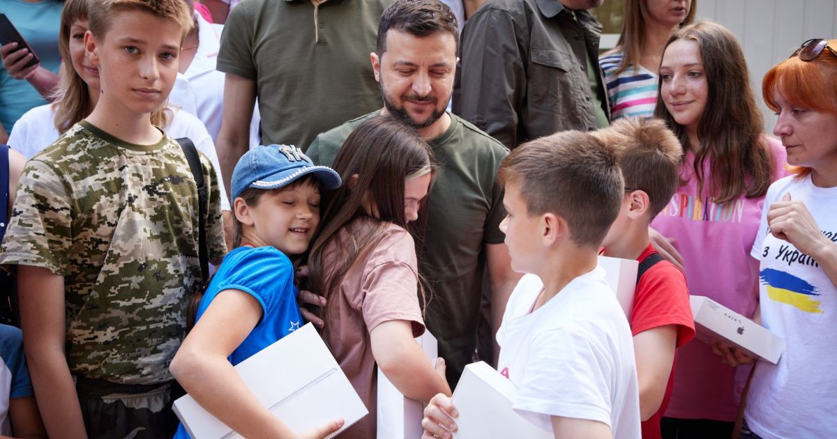"Тут їх зустріла Хортиця. По-людськи й тепло. Умови (проживання. – Ред.) бачив. Тимчасові, але непогані. Зрозумів їхні складні питання, Думаю, вирішимо. У кожної сім'ї своя історія. Більшість були без чоловіків. У когось чоловік пішов воювати, у когось – в полоні. У когось, на жаль, загинув. Просто трагедія – ні дому, ні близької людини. Але треба жити – заради дітей. Реальні герої серед нас", – зазначив глава держави.