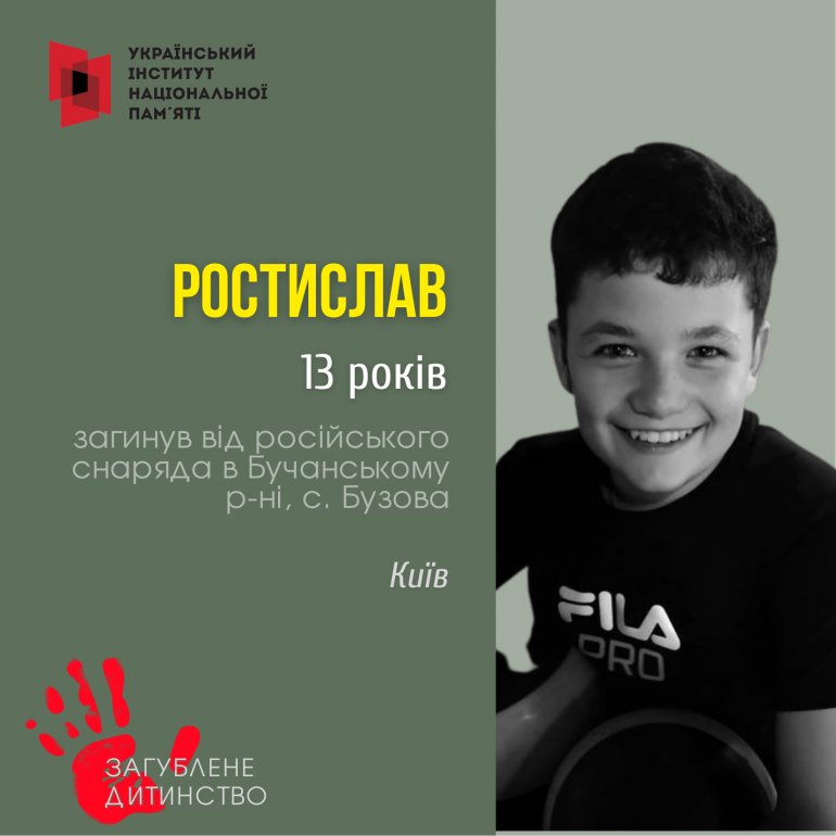 В останній день зими родина була в одному з сіл Бучанського району. Вони думали, що в селі врятуватися буде легше. Проте опинилися під окупацією. Окупанти на очах у рідних випустили у 13-річного хлопця снаряд довжиною 16 см та не лишили йому жодних шансів на життя, яке Ростислав дуже любив.
