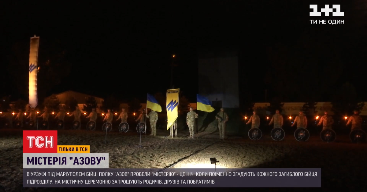 Вогонь посеред ночі, мінометні залпи, автоматні постріли та імена загиблих на щитах: під Маріуполем бійці полку "Азов" влаштували церемонію на згадку про всіх своїх полеглих бійців.