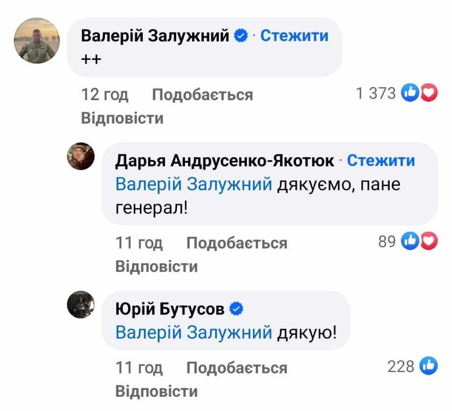Багато хто закликав відреагувати на трагічну історію навіть головкома ЗСУ Залужного. Валерій Федорович під дописом Бутусова у фейсбуці залишив коментар.