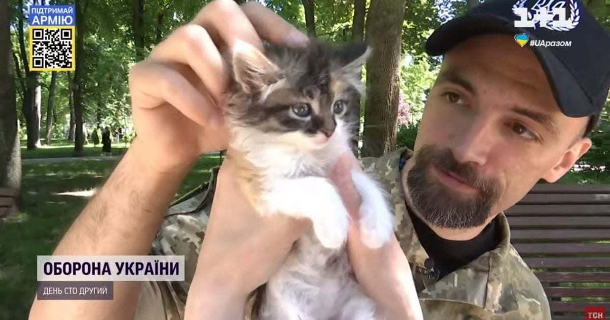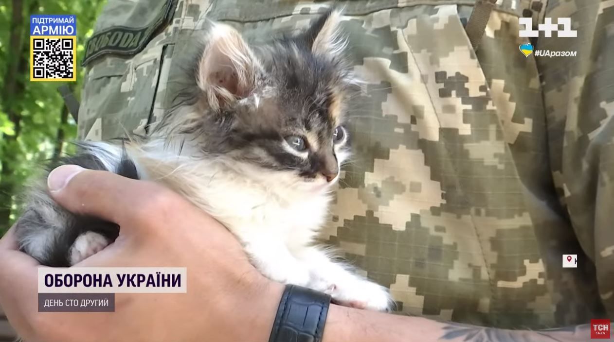 Олександр із позивним "Фізрук" під час поїздки на Схід знайшов маленьку кицю. Пухнаста так запала в душу, що покинути не зміг і забрав до Києва, а тепер із ним вони – нерозлийвода, йдеться в ТСН.