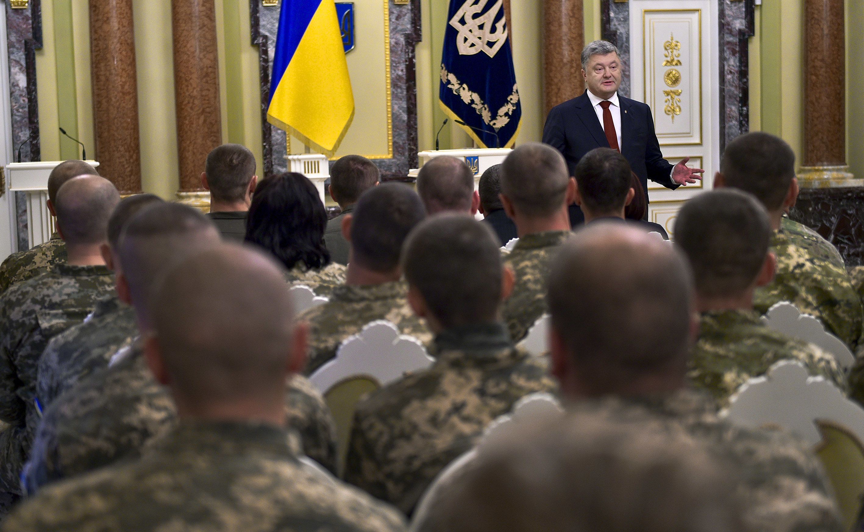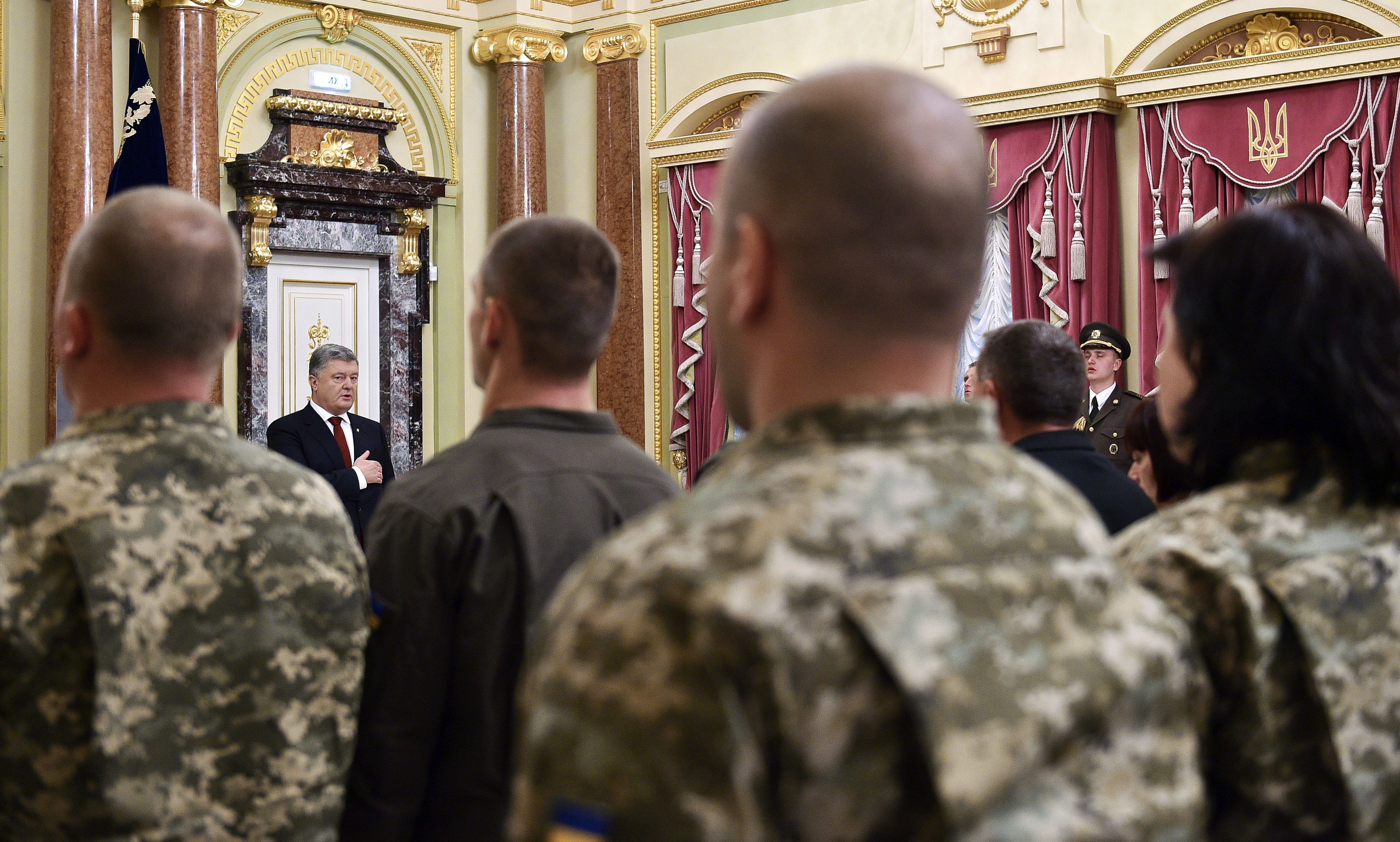 Президент України Петро Порошенко 13 жовтня у київському Маріїнському палаці привітав українських військових з Днем захисника.