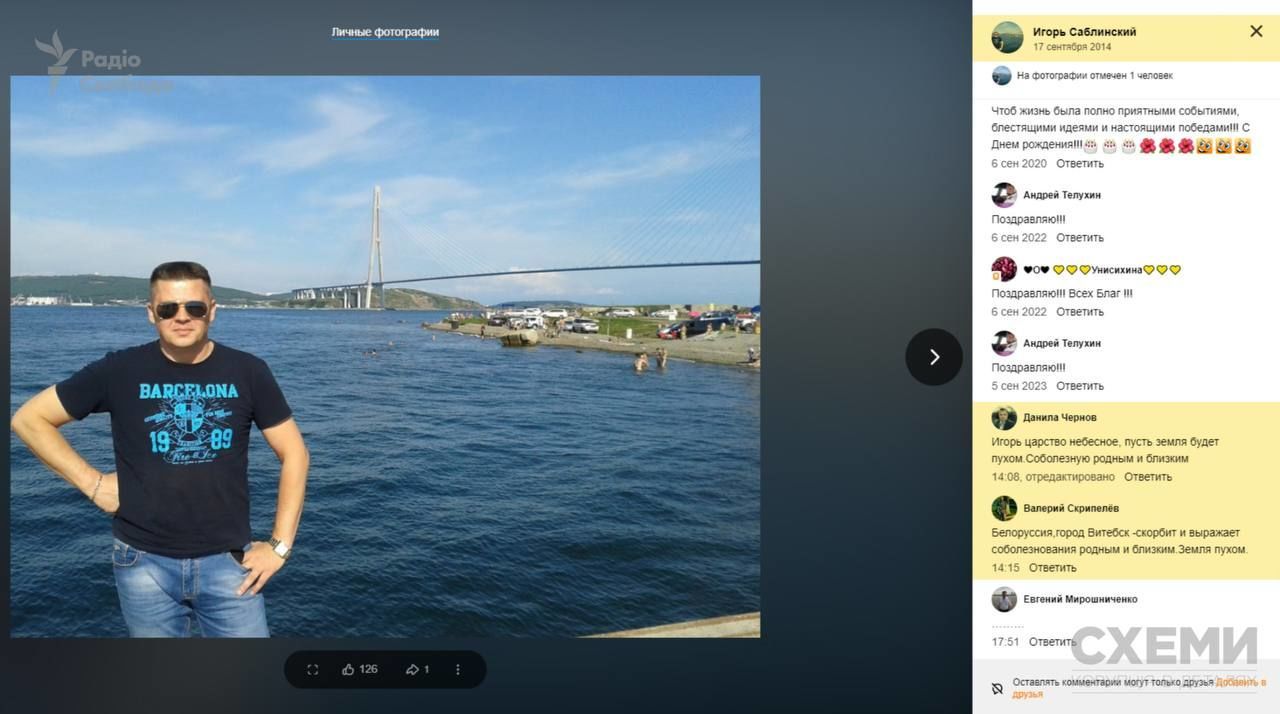 Крім того журналісти розшукали в соціальних мережах сторінку ще одного члена екіпажу Іл-76 — бортового радиста Ігоря Саблінського. Під його фото висловлюють співчуття щодо загибелі.