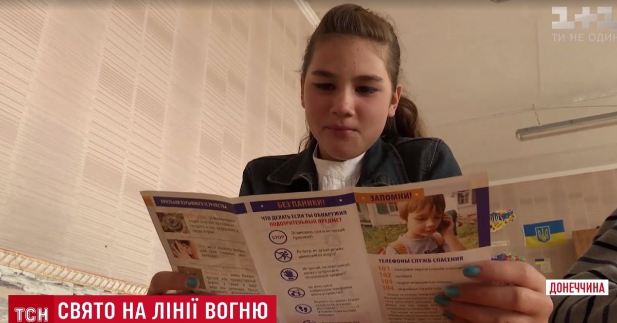 У школі вікна закриті мішками, а заняття починаються уроком із безпеки – правилами надання першої медичної допомоги. Основні засади виживання діти знають уже й без методичок. "У нас робиться три дзвінка, і ми мирно, без паніки, ідемо в наше бомбосховище", - розповіла шкільний психолог Валентина Лінник. Це приміщення завжди відчинене та має запаси свіжої води, але військові кажуть, що порівняно з минулим роком ситуація на фронті стала спокійнішою. Хоча з досвіду знають, що перемир'я довше тижня зазвичай не витримується.