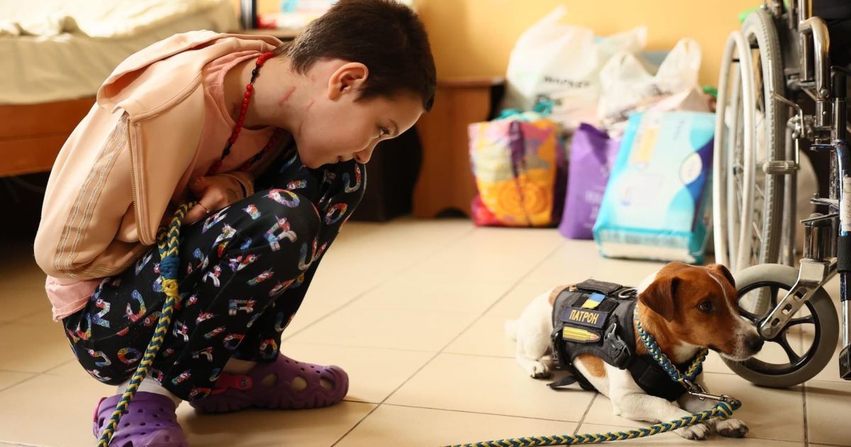1 червня, у Міжнародний день захисту дітей, популярний пес-сапер Патрон у Львові провідав поранених від рук російських окупантів українських дітей.