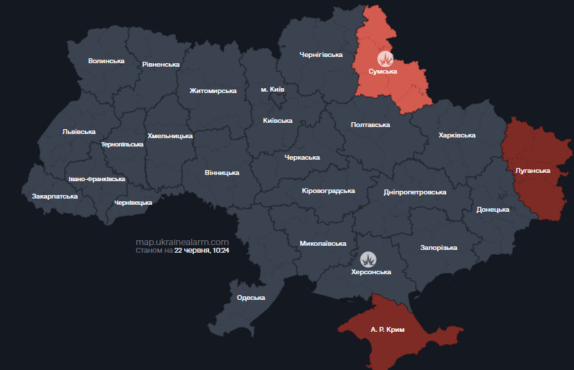 Повітряна тривога на Сумщині 22 червня.