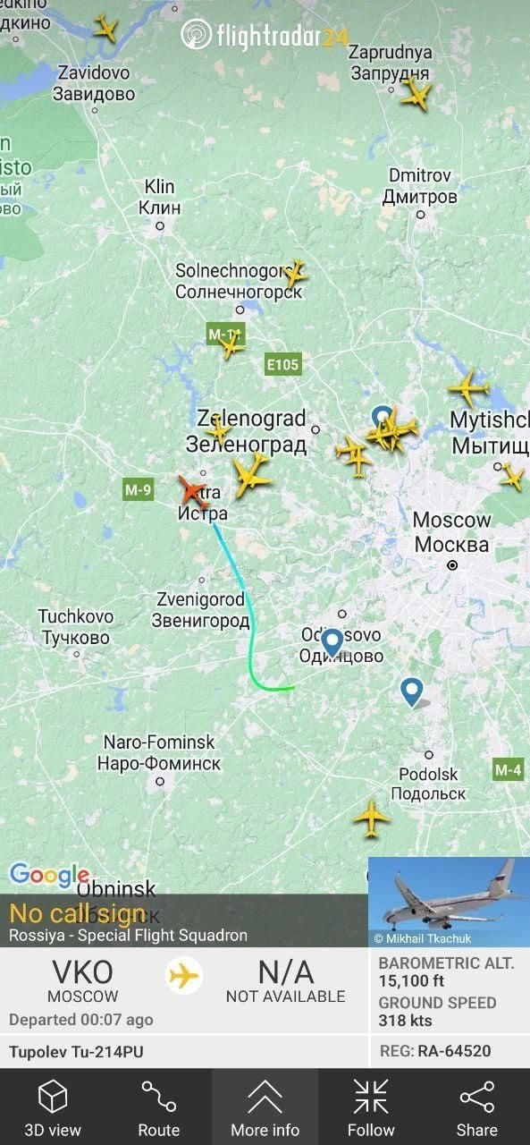 Раніше російський президентський літак ТУ-214ПУ, який належить спеціальному льотному загону "Росія" і який використовує господар Кремля Володимир Путін, зник із радарів під час польоту із Внуково у бік Санкт-Петербурга.