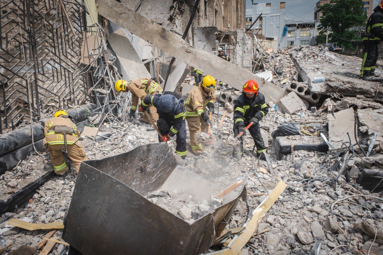 "Станом на 17:00 28 червня з-під завалів деблоковано тіла 11 осіб (зокрема 3 дитини), постраждало 56 осіб (зокрема 1 дитина) та 7 осіб врятовано", - повідомили рятувальники.