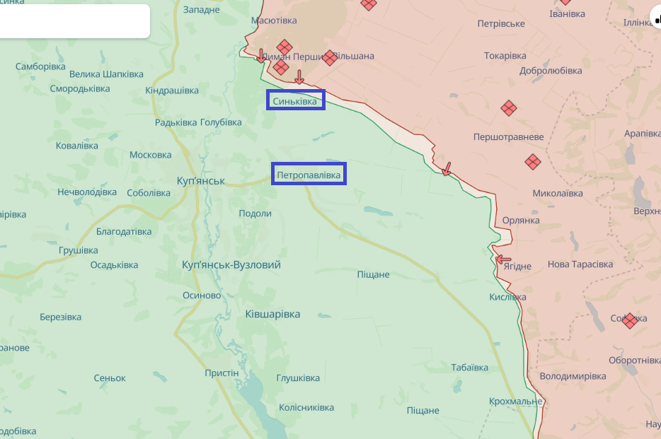 Синьківка і Петропавлівка на карті / © Deepstatemap