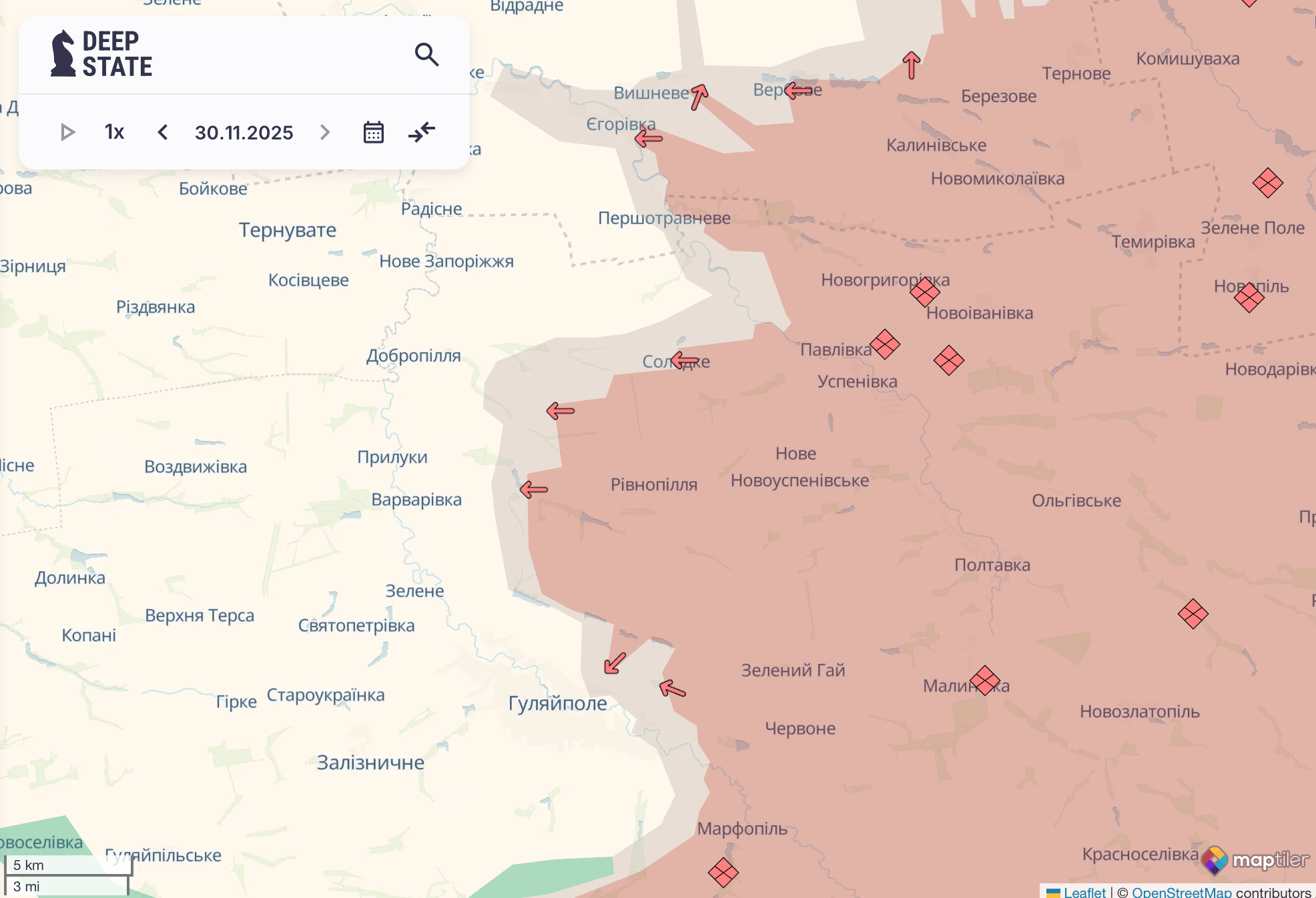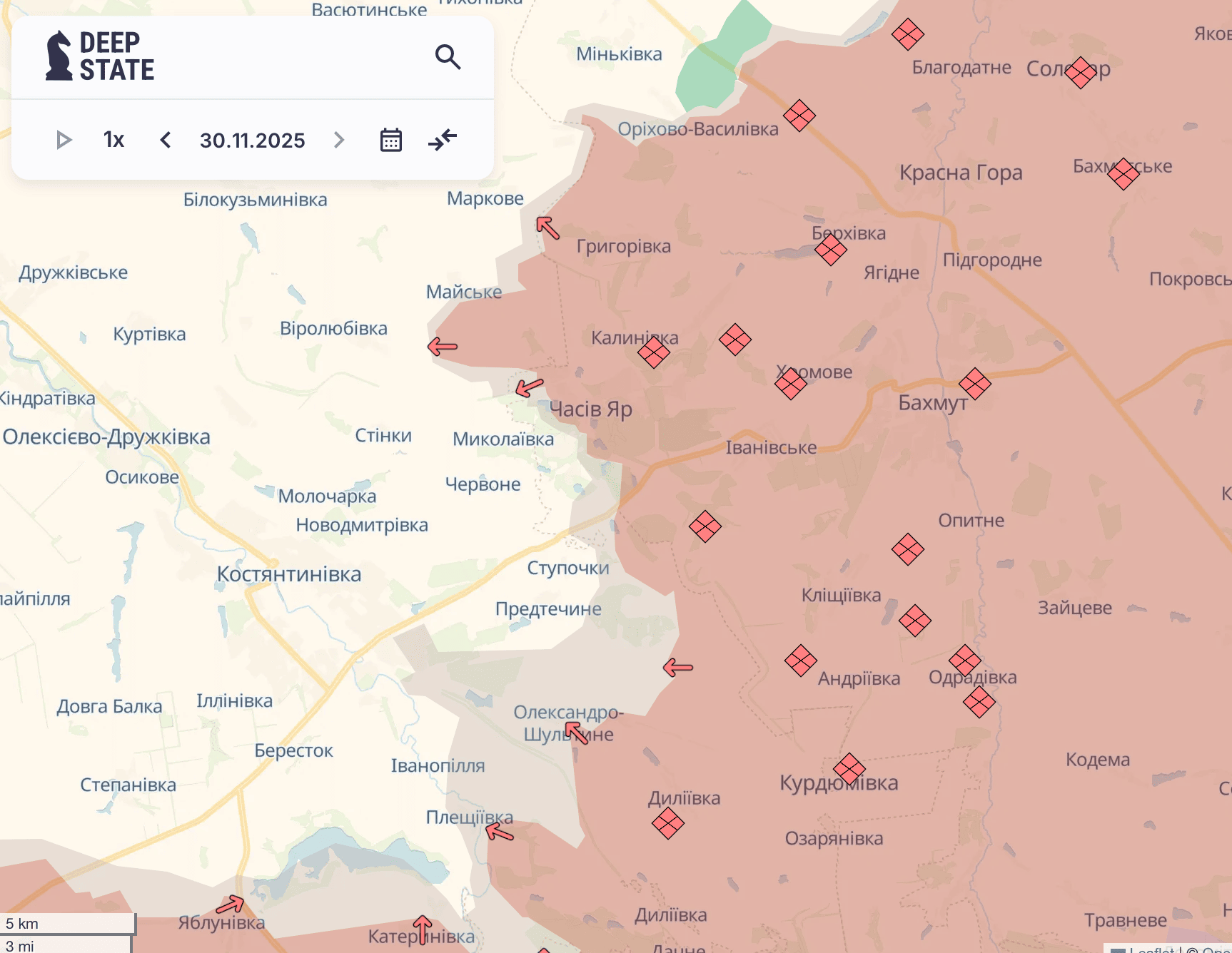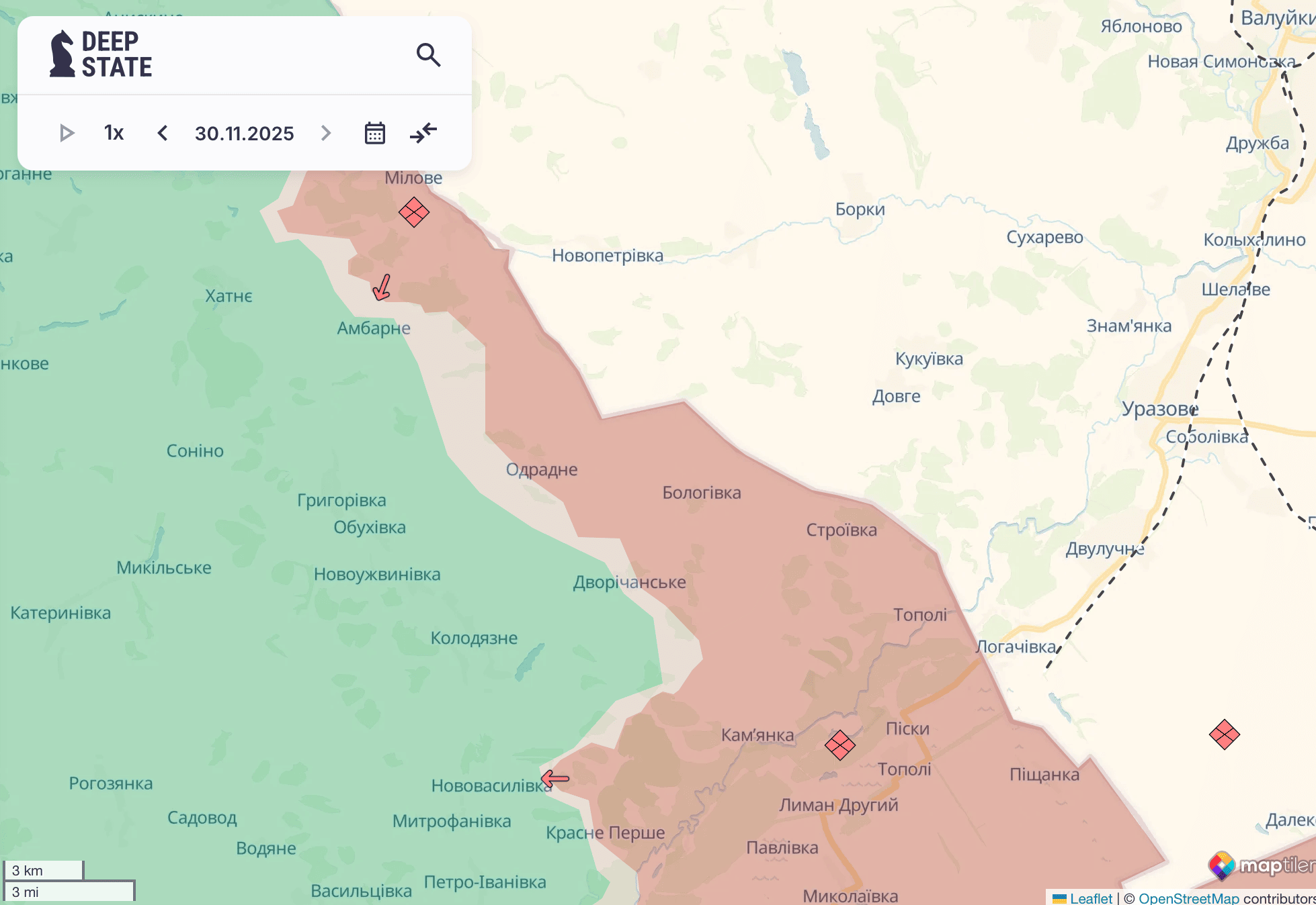 Deep State повідомив про просування ворога біля чотирьох населених пунктів на сході та півдні.