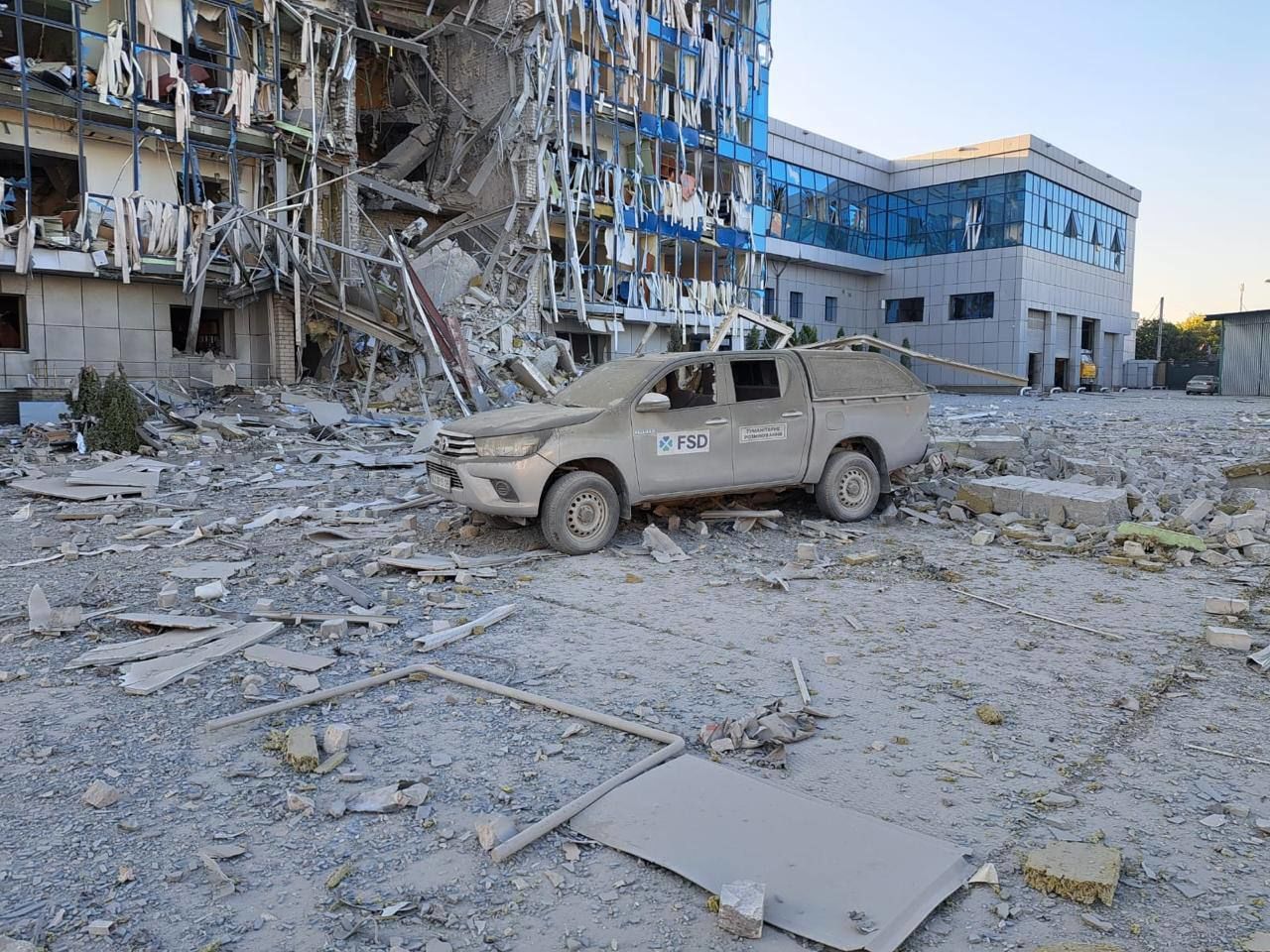 Російські загарбники завдали ракетного удару по офісу міжнародної гуманітарної організації, яка займається розмінуванням території Харківської області.