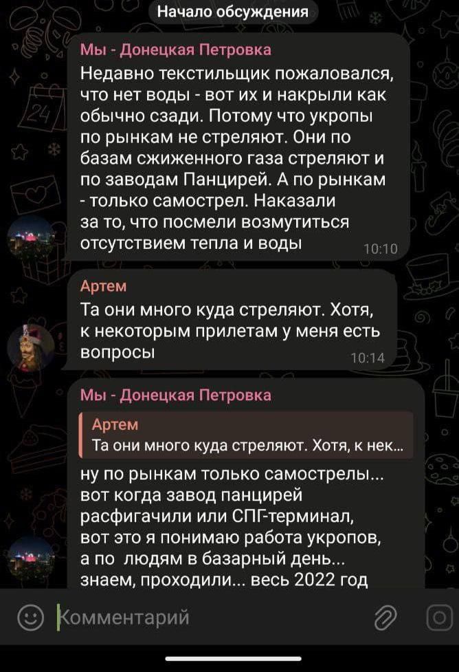 Про те, що це був черговий кривавий самообстріл визнають і місцеві жителі у чатах.