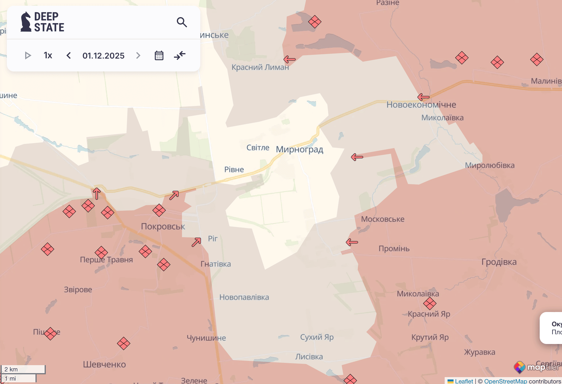 Нагадаємо, 1 грудня у DeepState інформували про просування ворога поблизу Рівнопілля, Гуляйполя Запорізької області, біля Ступочок Донецької області та Дворічанського на Харківщині.