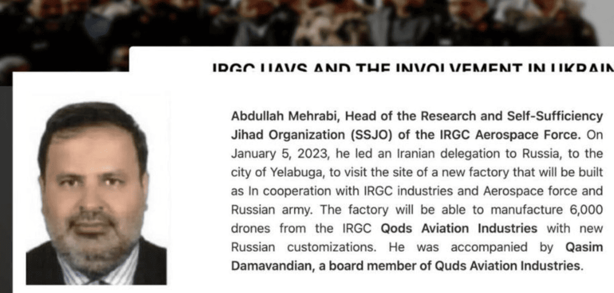 Йдеться про бригадного генерала Абдоллу Мехрабі — керівника Організації джихаду з дослідження і самозабезпечення повітряно-космічних сил Корпусу вартових Ісламської революції (КВІР).