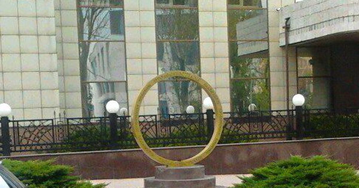 Пам'ятник стояв біля відділення "Промінвестбанку" на вулиці Артема в центрі міста і зображував одну залізну гривню.