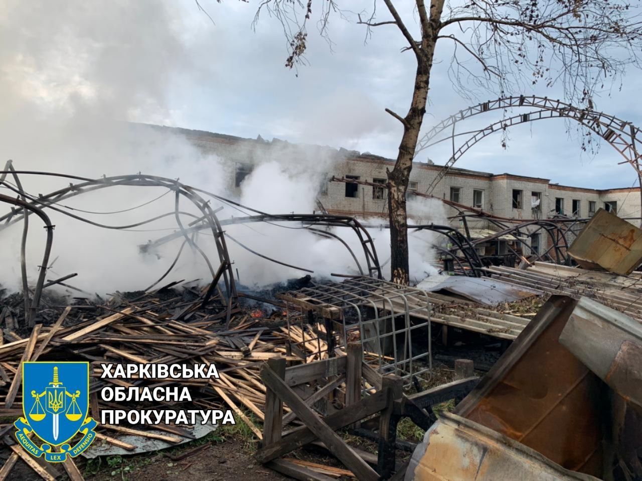 У Харкові внаслідок ворожого обстрілу зруйновано адмінбудівлю та склад пиломатеріалів: фото