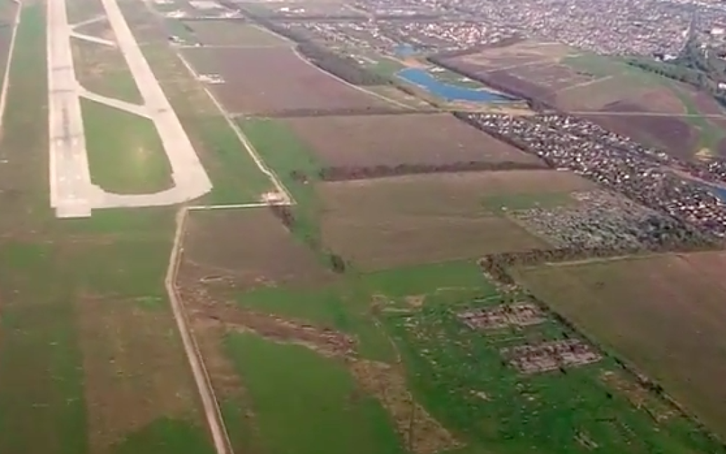 На короткому відео на фоні зелених полів видніється довга злітно-посадкова смуга.