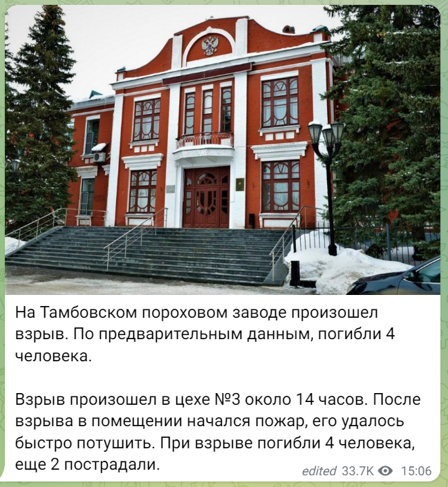 На Тамбовському пороховому заводі пролунав вибух / Фото: пропаганда РФ