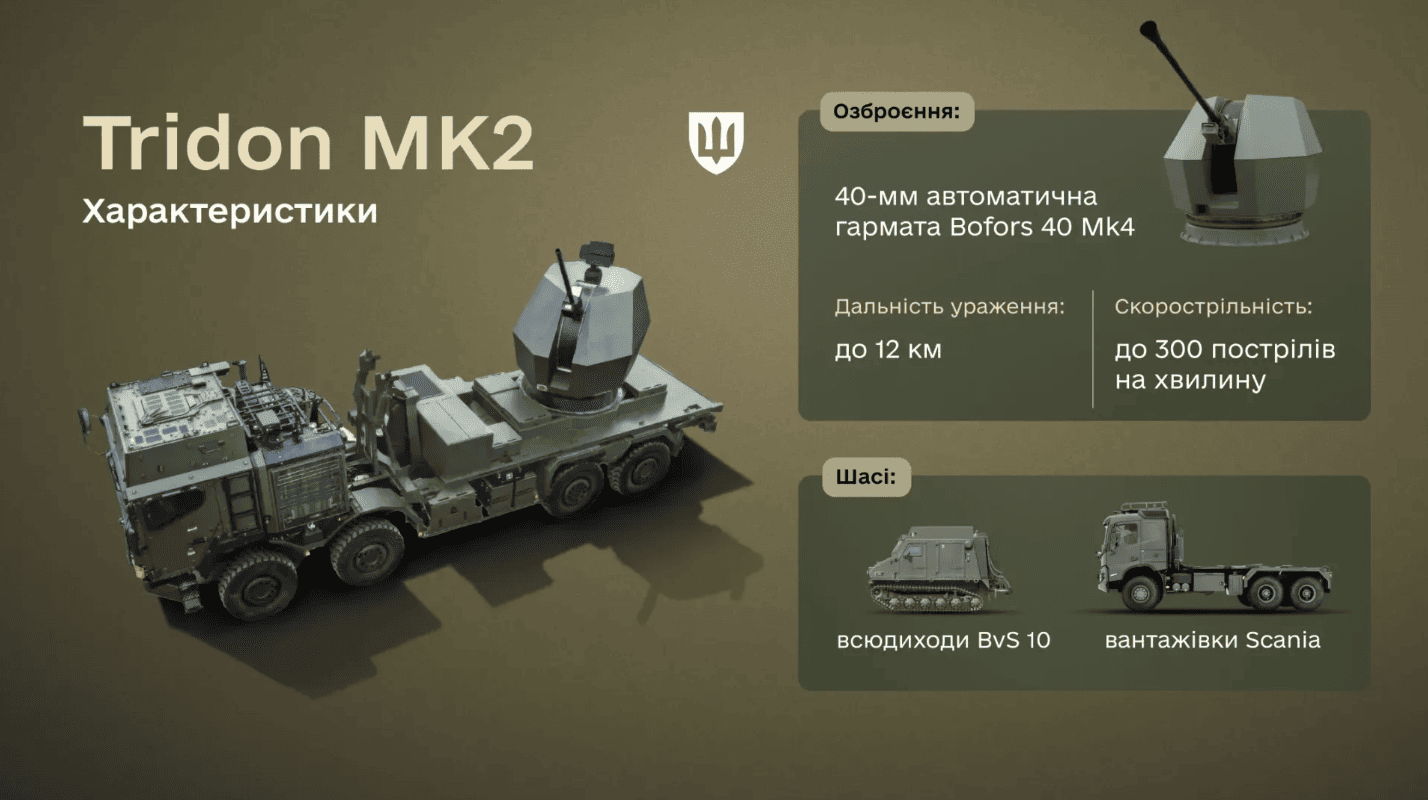 Україна отримає сучасні системи протиповітряної оборони Tridon Mk2 від Швеції, які призначені для боротьби з дронами, зокрема типу «Шахед», а також іншими повітряними цілями.