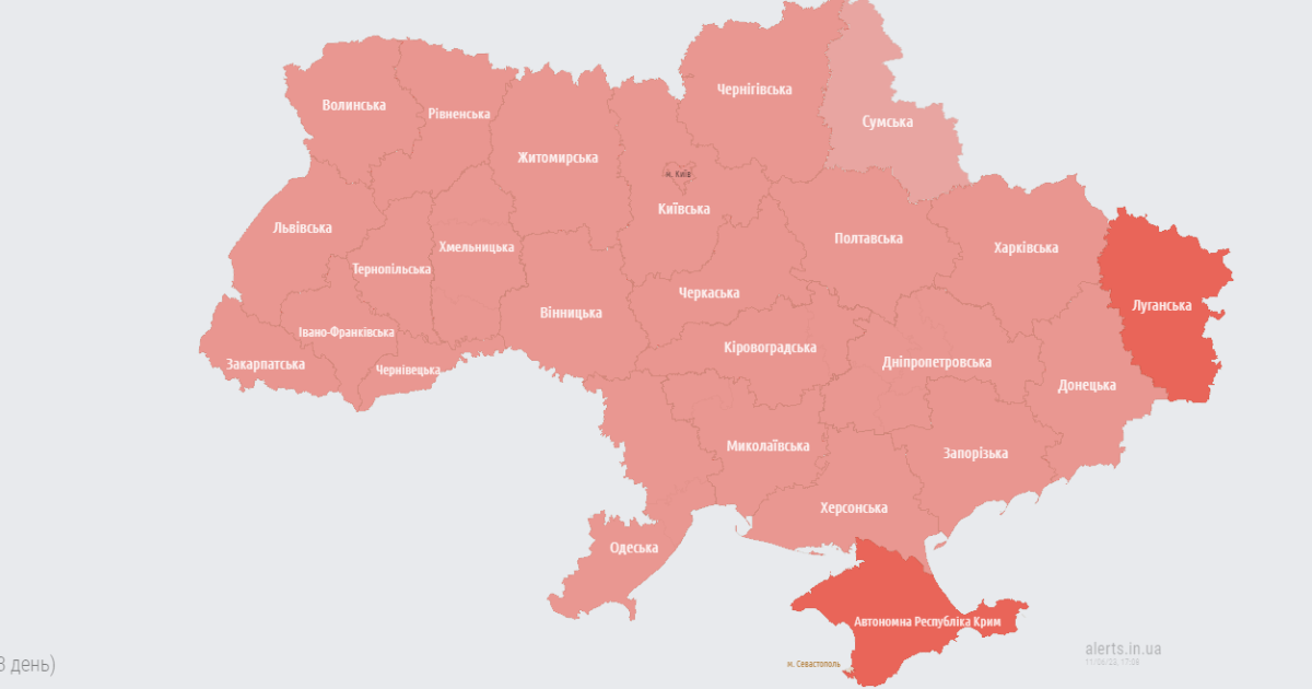 Масштабну повітряну тривогу в Україні оголосили 11 червня об 17:00. Станом на зараз "почервоніли" усі області нашої держави.