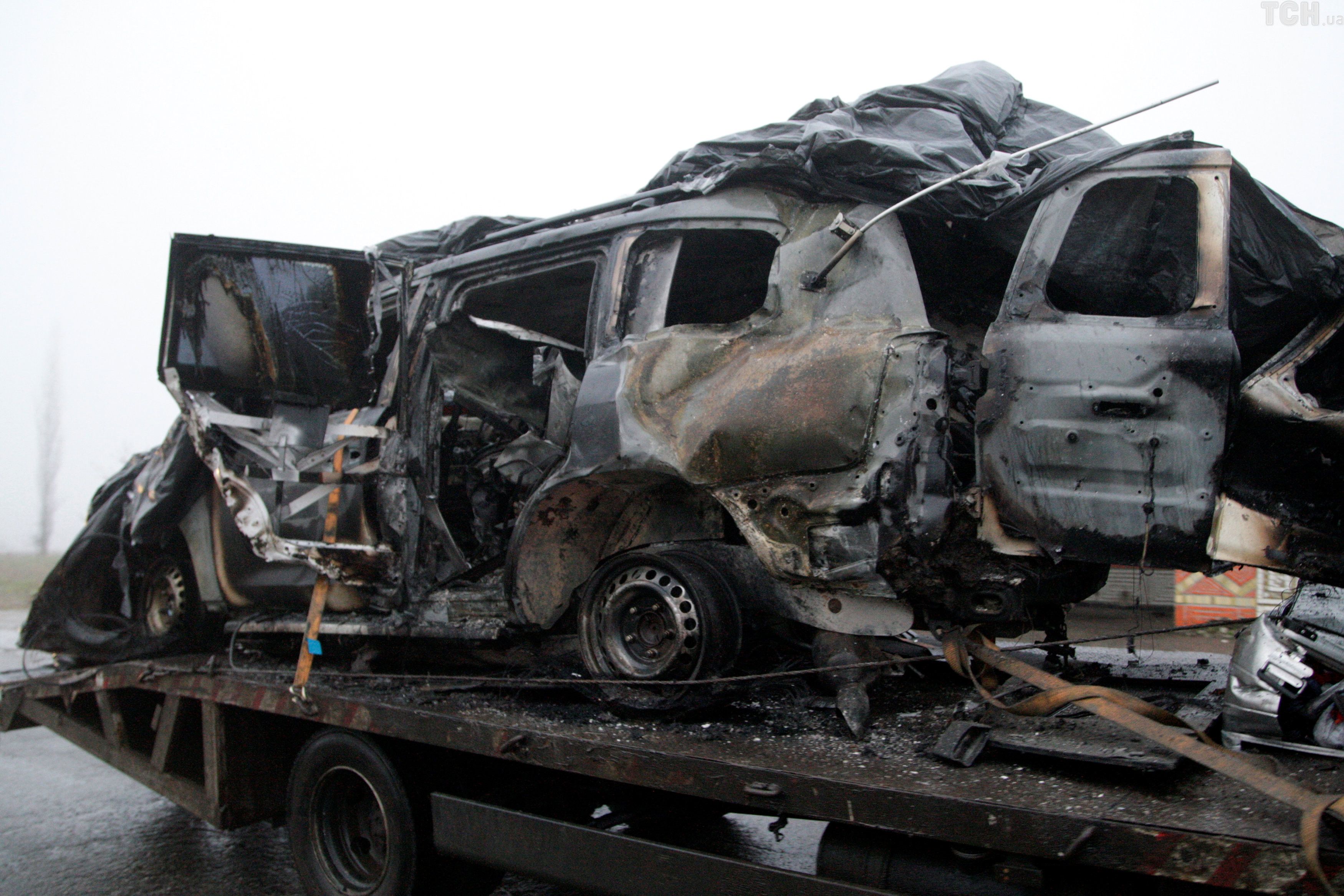 Пошкоджене авто спостерігачів СММ / © Reuters