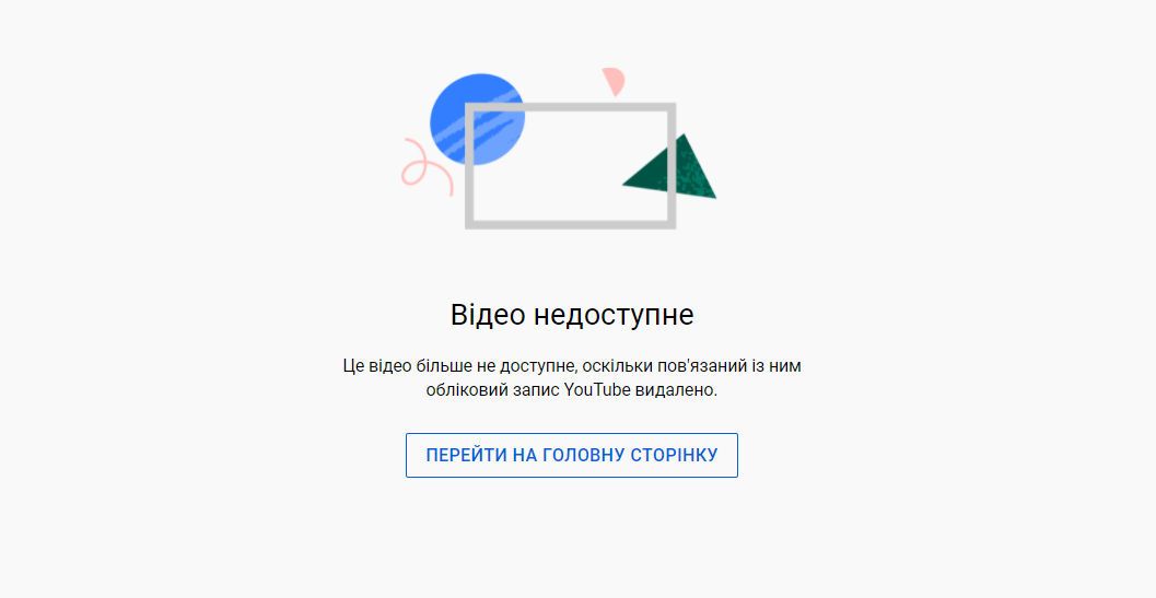 У повідомленні YouTube йдеться про те, що акаунт видалили через порушення правил спільноти.