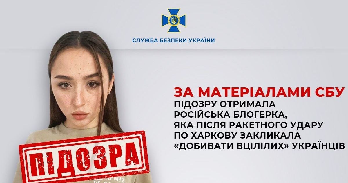 СБУ повідомила про підозру російській блогерці Ельвіні Боровковій, яка після ракетного удару по Харкову закликала “добивати вцілілих” українців.
