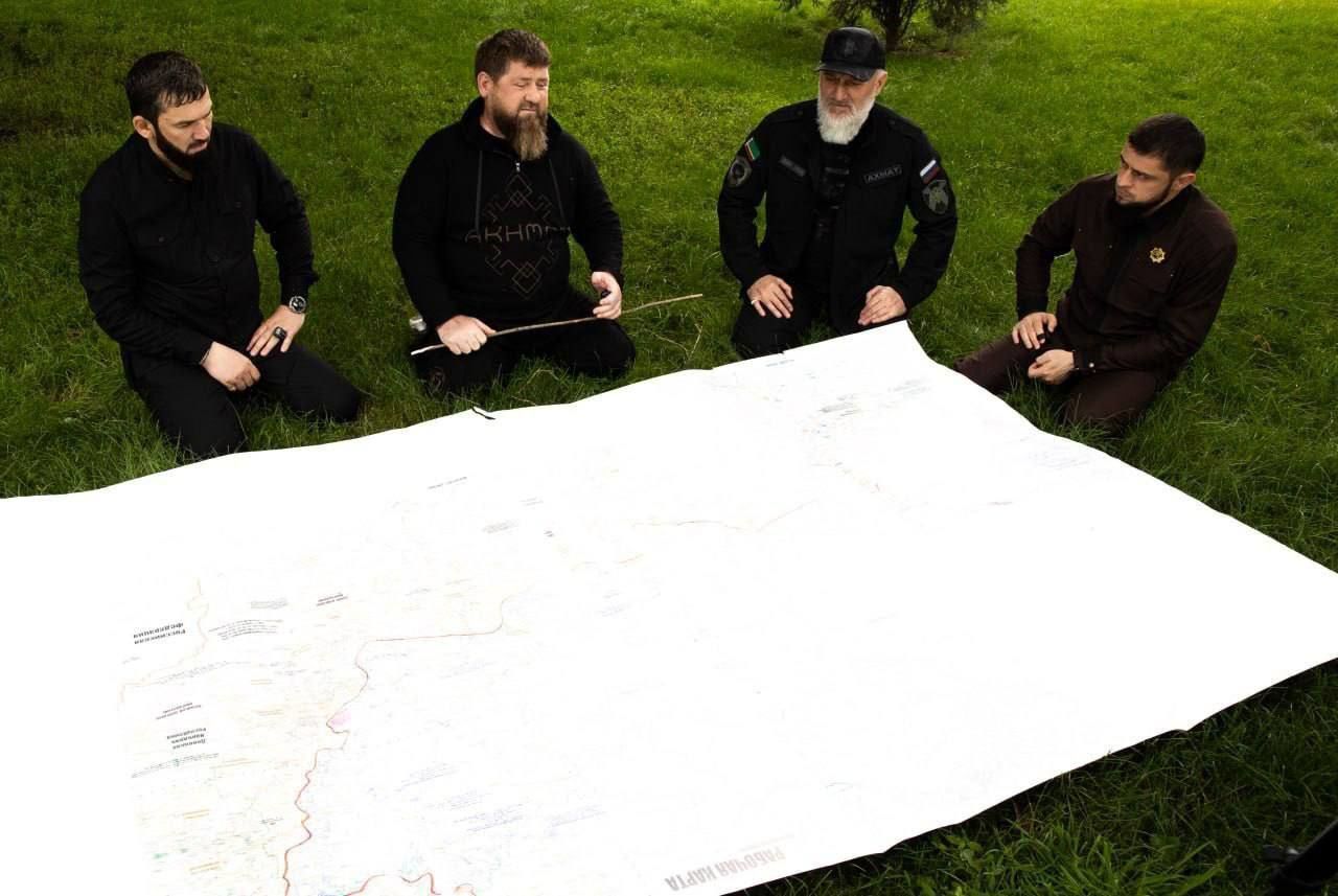 Також Кадиров опублікував фото, де він разом зі своїми соратниками Адамом Делімхановим, Магомедом Даудовим та Ахмедом Дудаєвим стоять на тлі якоїсь карти. Коли зроблена світлина – невідомо.
