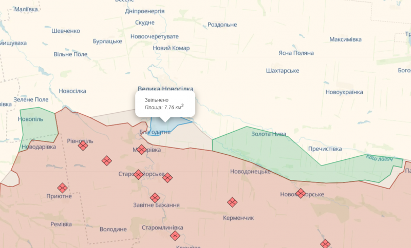 Про це йдеться на карті бойових дій Deepstate.