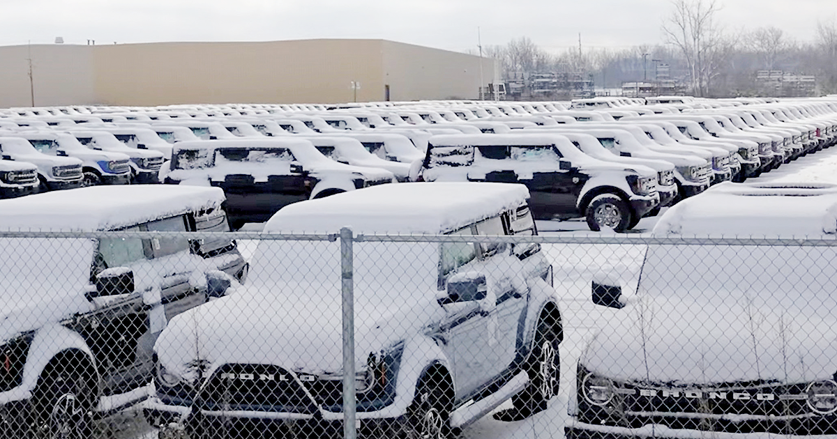 Позашляховики, замовлені 2021-го і навіть 2020 року, давно мали доправити покупцям, проте терміни постійно відкладаються. Кількість Bronco вже така велика, що їх доводиться зберігати просто неба: як видно на фотографії, машини, вкриті сніговими "шапками", стоять без чохлів.