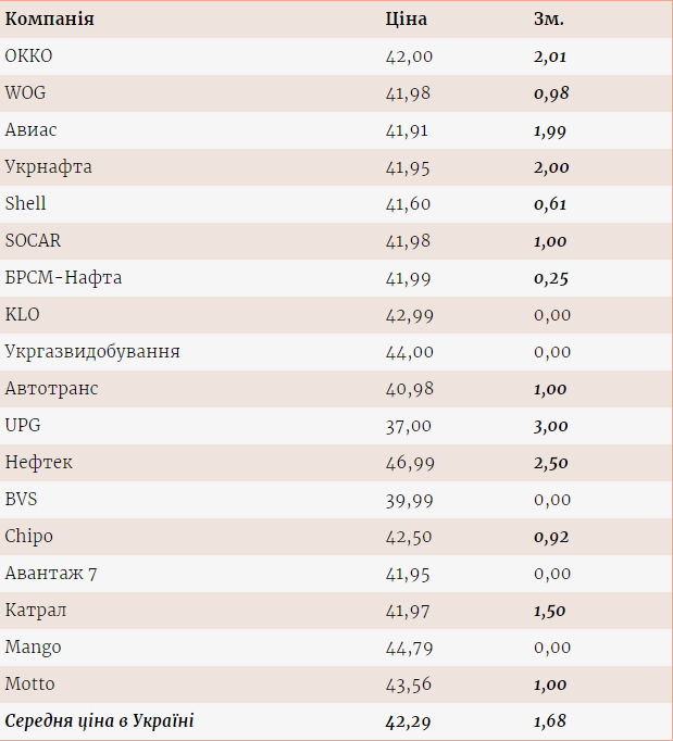 На станціях ОККО і WOG автогаз здорожчав на 2,01 грн/л і 0,98 грн/л - до 42,00 і 41,98 грн/л відповідно. На 2 грн/л збільшила ціни консолідована мережа "Привату". На її станціях автогаз коштує 41,95 грн/л.