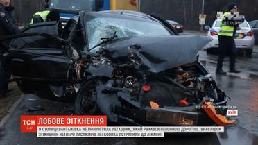 Автотроща в Києві: лоб у лоб зіткнулися легковик та вантажівка