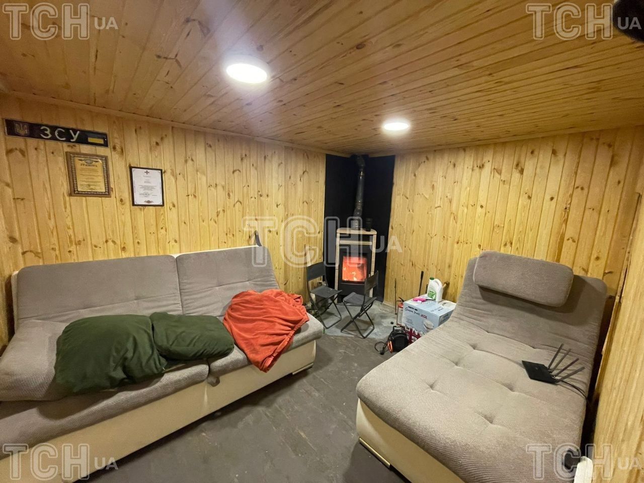 "В бункері все демократично. Не чути зовнішнього шуму, можна спокійно спати, що я інколи роблю. Хоромів не будував. Є сходи вниз, а там кімната – вона розрахована на декілька чоловік. На стінах є символічні прикраси – пару грамот та державні символи, картина. Достатньо м’яких меблів, щоб посидіти виспатися або культурно відпочити", - розповідає нам господар бункеру.