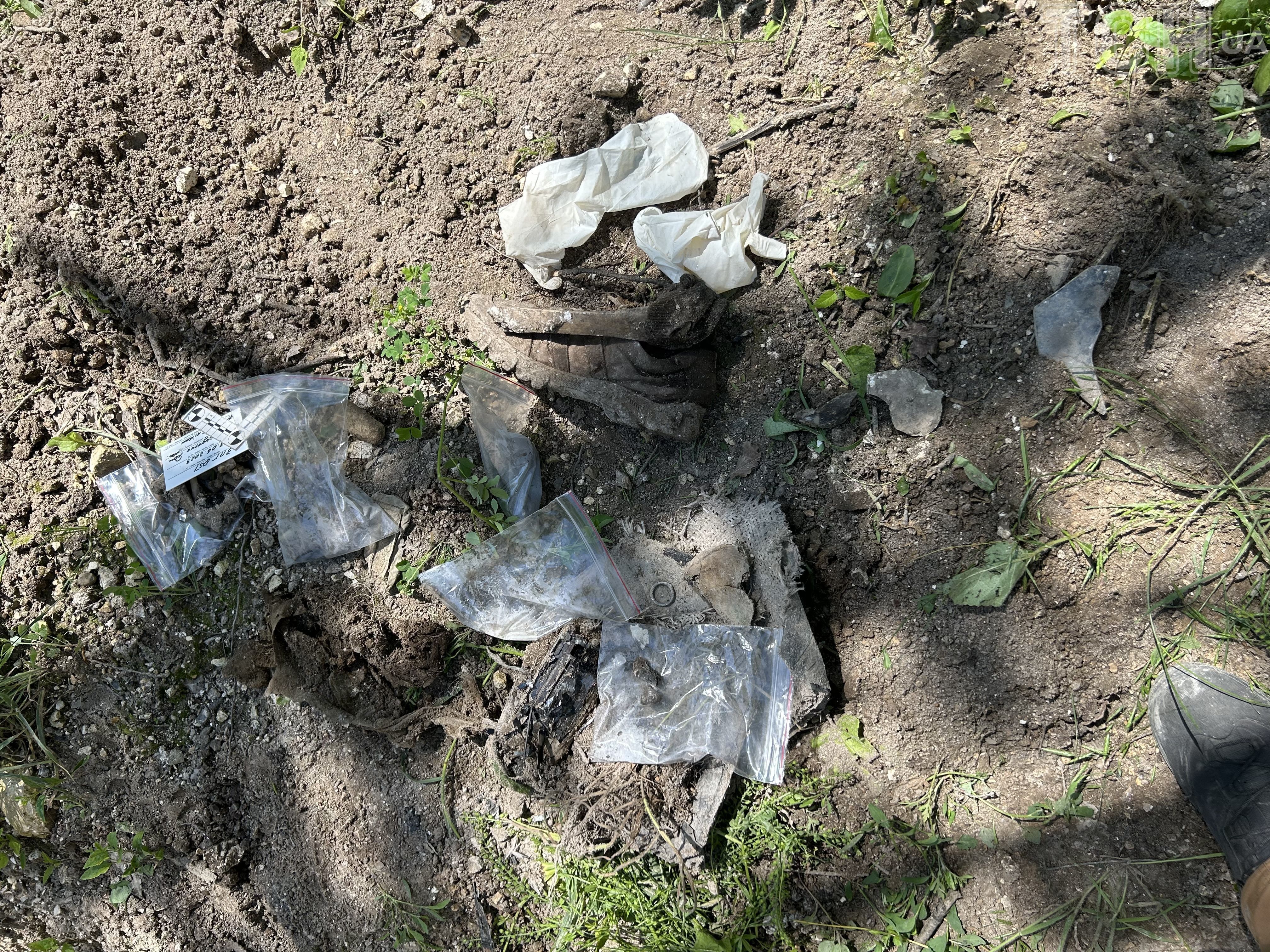 Кожну знахідку фотографують на місці, де вона була виявлена. Кладуть у пакет із застібкою, так буде легше працювати експертам - немає жодної впевненості, що ми знаходимо одну й ту саму людину, велика вірогідність, що це залишки тих, кого вже ідентифікували, але досі так і не поховали, бо справа не завершена. Шестеро загиблих чекають на свого сьомого.
