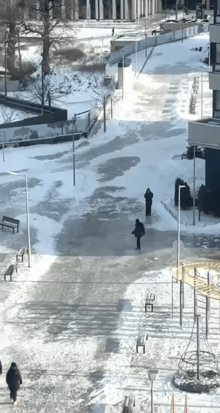 У мережі ширилося відео, як мешканець Троєщини катається на ковзанах по тротуару. Тоді Київ накрив крижаний дощ, а вже на ніч вдарив сильний мороз і випав сніг. Можна лише уявити, що зараз відбувається на тому тротуарі.