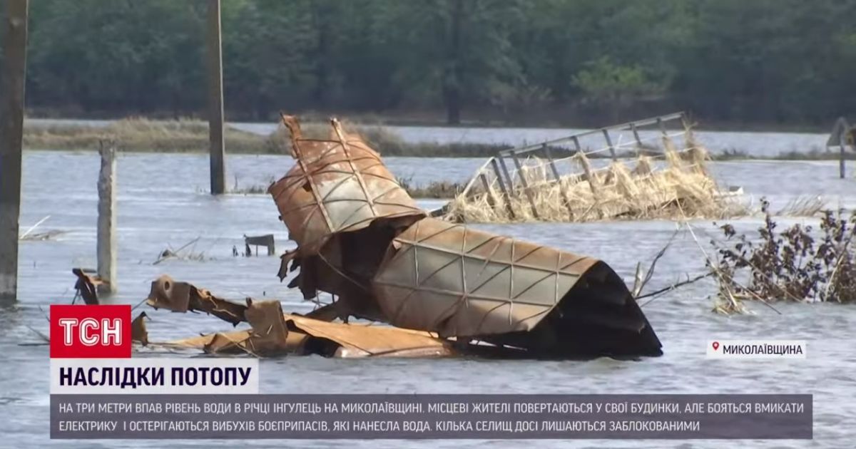 На три метри впав рівень води в річці Інгулець. На Миколаївщині місцеві повертаються до своїх будинків, звідки пішла вода, але бояться вмикати електрику через затоплені проводки та остерігаються боєприпасів, які хвилями могло занести на подвірʼя. Кілька селищ досі залишаються заблокованими від великого суходолу, дістатися туди можна лише пішки, йдеться в ТСН.