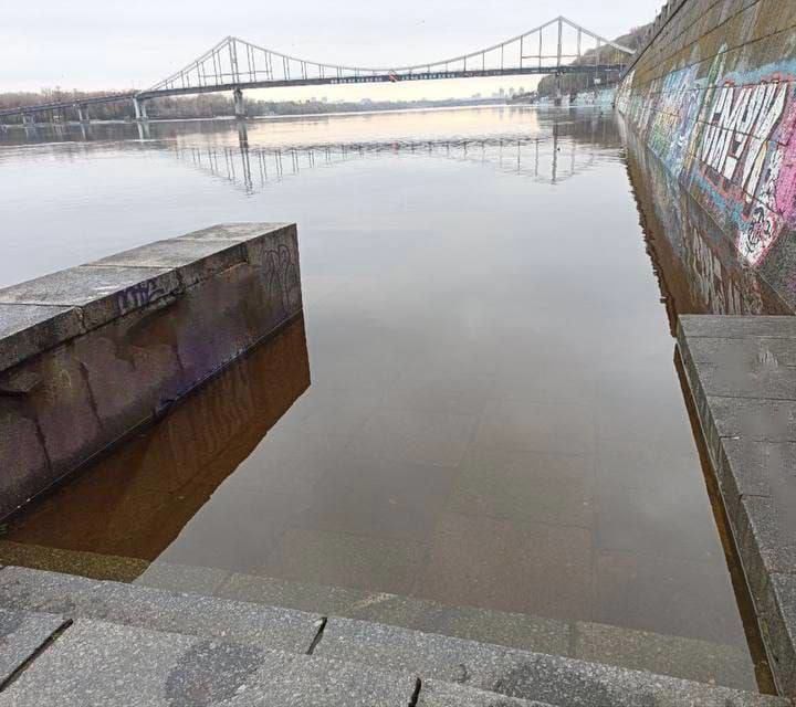 Велика вода затоплює територію набережних у Києві. Під воду пішли декілька прогулянкових зон, які розташовані поблизу Дніпра. Рівень води різко збільшився біля моста Метро. Там під воду пішла частина набережної. Також підтоплена нова набережна на лівому березі, недалеко від мосту Метро.