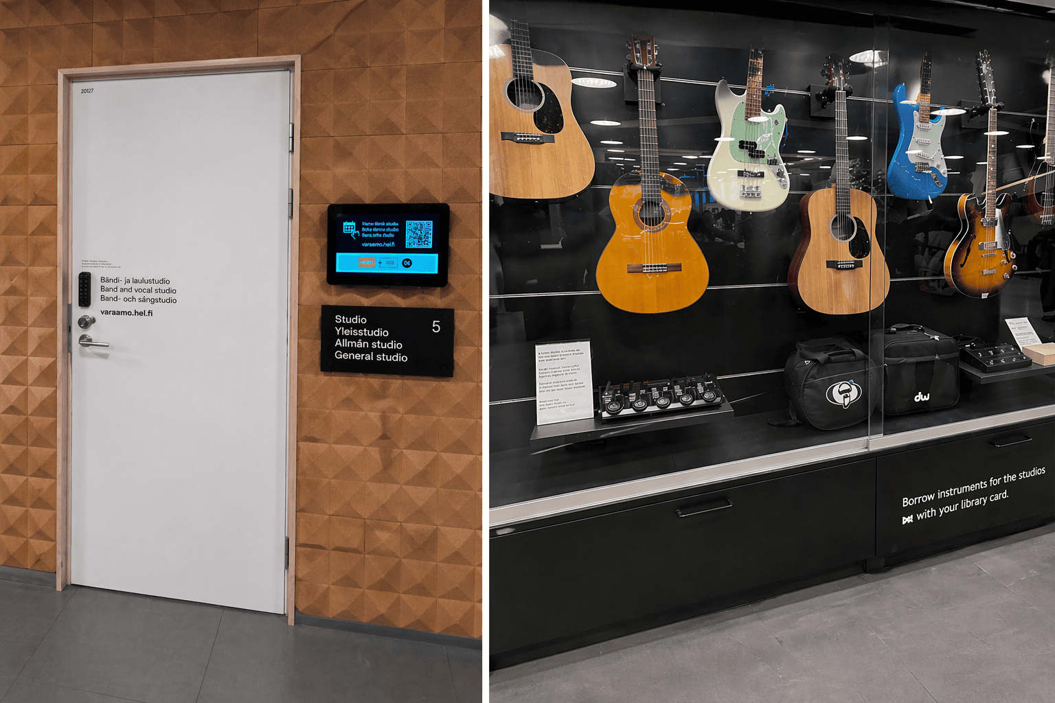 Відвідувачі можуть забронювати місце в студії та позичити інструменти за допомогою читацького квитка. Колаж: Ольги Консевич