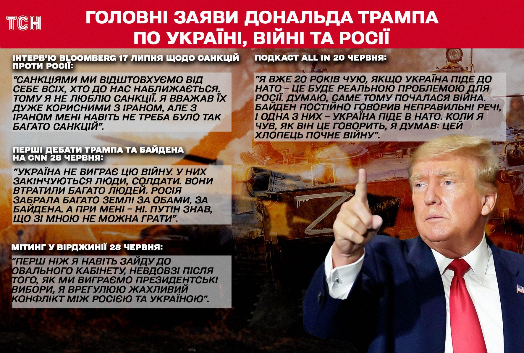 Що Трамп говорив по Україні та війні: головні заяви за менш ніж чотири місяці до виборів. / © ТСН.ua