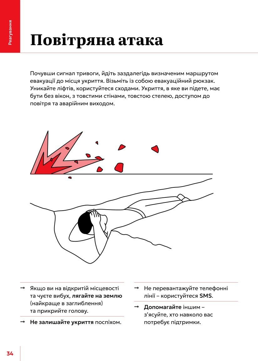 У посібнику детально розписано, як діяти під час повітряних атак та під час інших загроз.