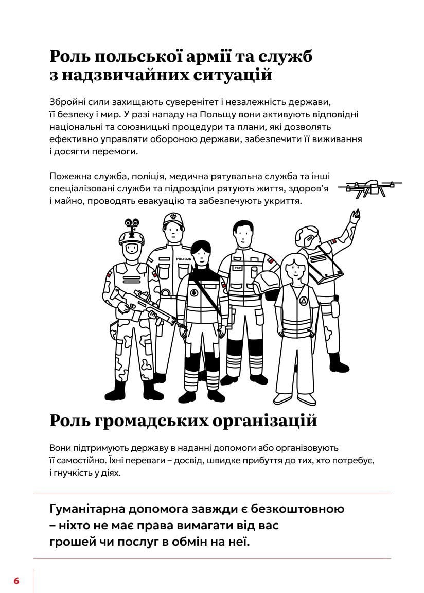 Перші речення цього буклету є такими: «Твоя підготовка має значення. Протягом останніх років загроза для Польщі значно збільшилась. Війна за межами нашого східного кордону також впливає на наше відчуття безпеки».