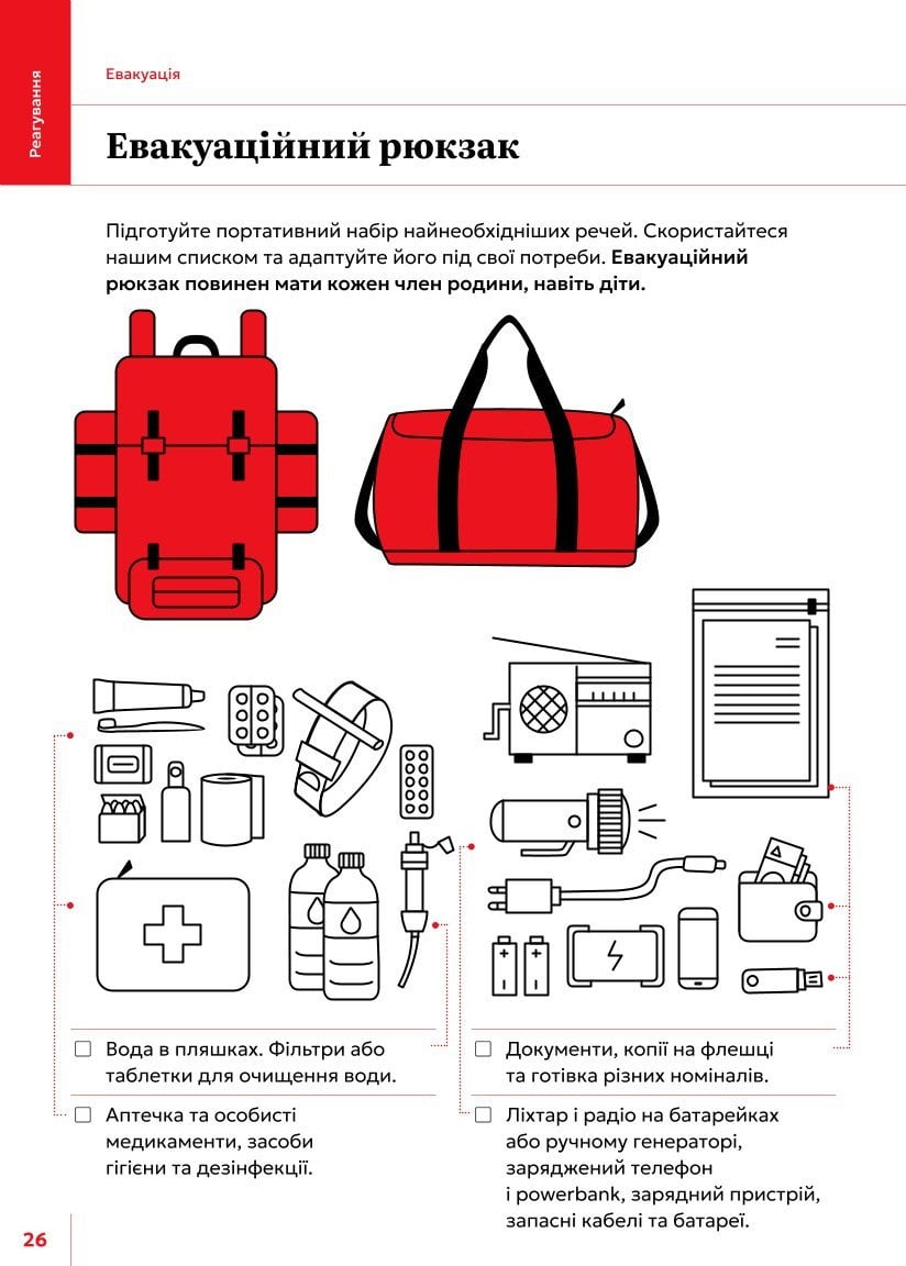 Наприклад, одна з сторінок цього посібника має таку назву: «Підготуй себе та найближчих».