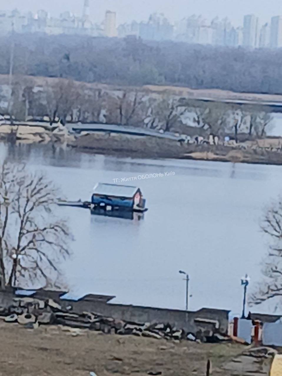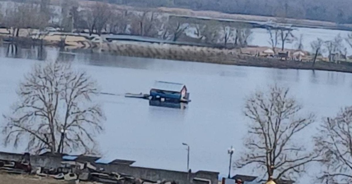 У Києві помітили одноповерховий будинок, який пливе посеред Дніпра. Споруда дрейфувала по воді затокою Оболонь.