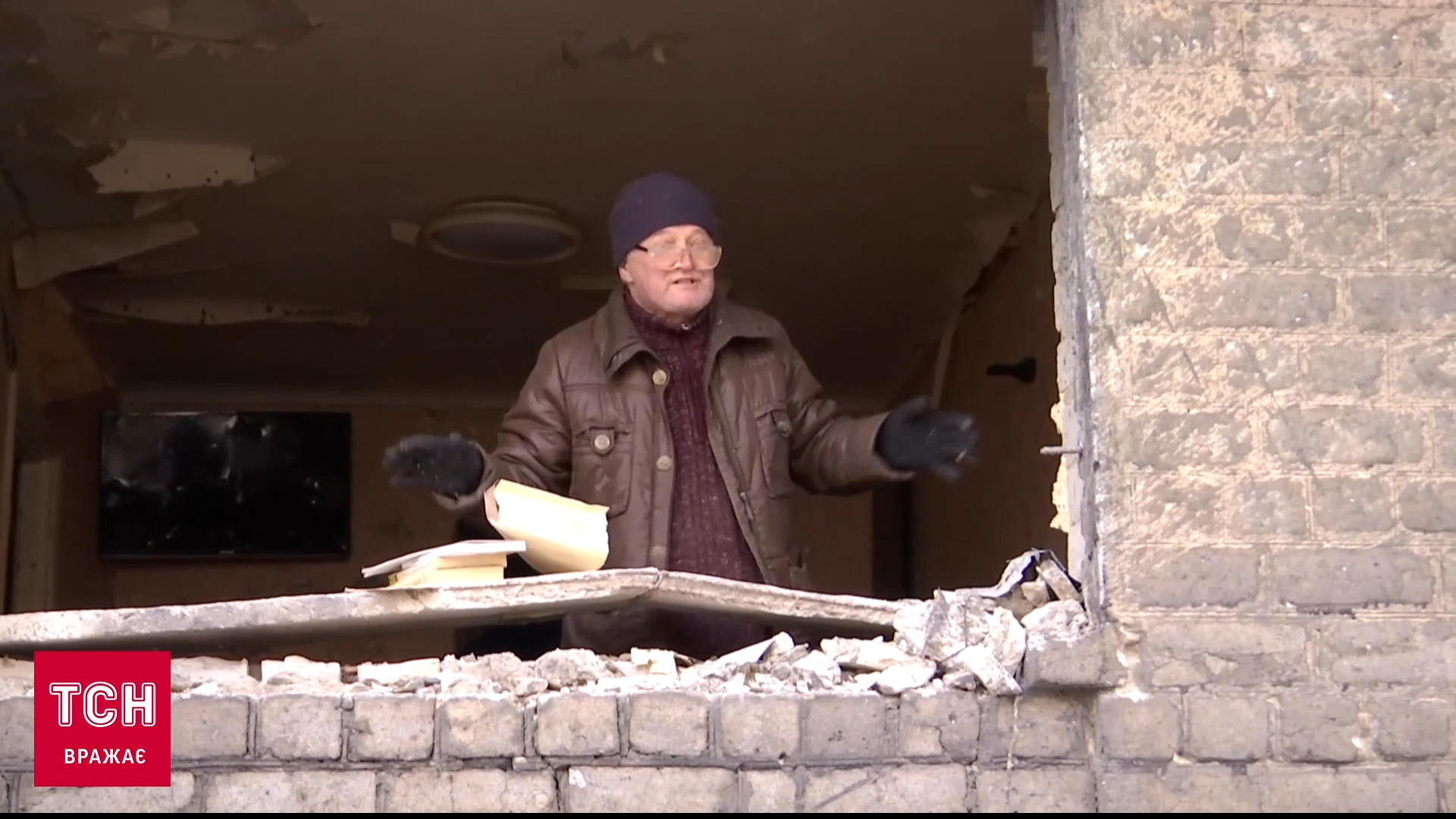 Пан Володимир каже, що його квартира перетворилась на друзки. Він із мамою дивом вижив.