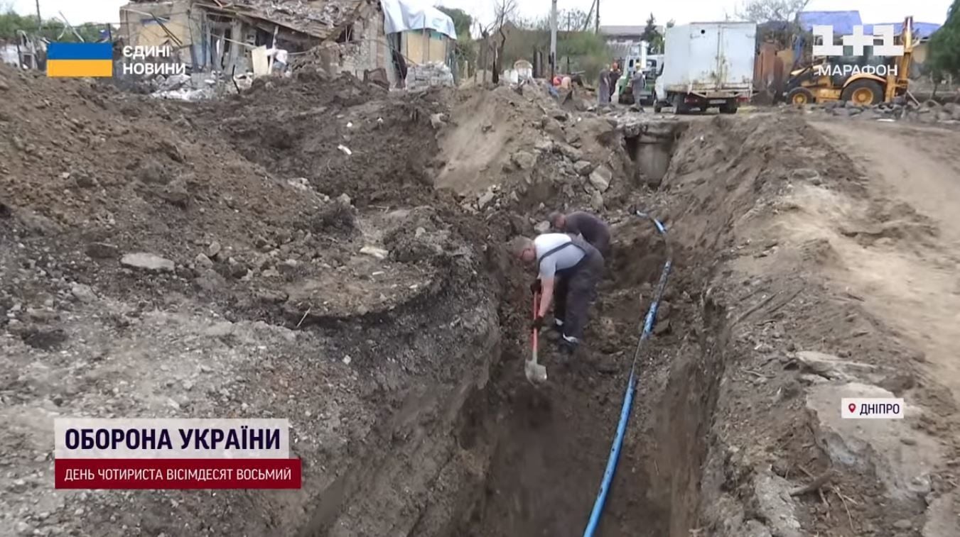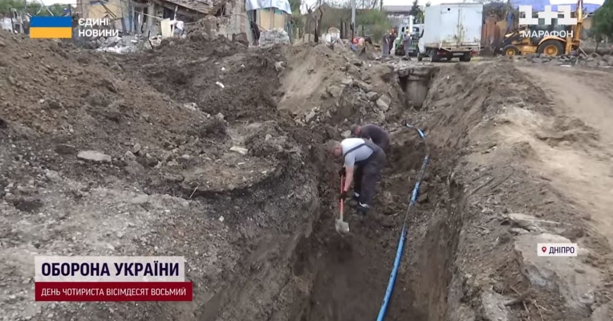 На понівечену вулицю вже повернули світло, працюють над відновленням водопостачання.