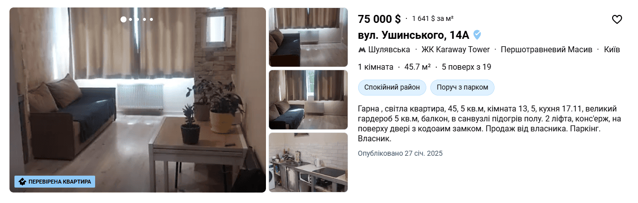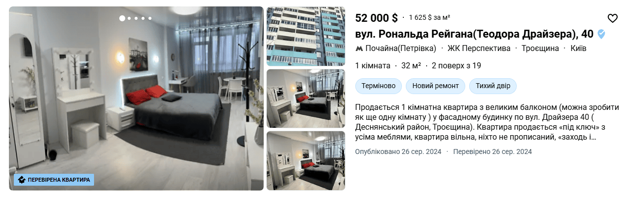 У Києві попит на готове житло високий і ціни відповідні. У бюджетному сегменті однокімнатні квартири площею 30–40 м² у спальних районах в новобудовах з базовим сучасним ремонтом та необхідною для життя технікою коштують від 52 000 — 60 000 доларів.