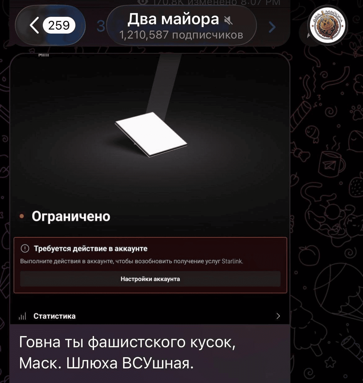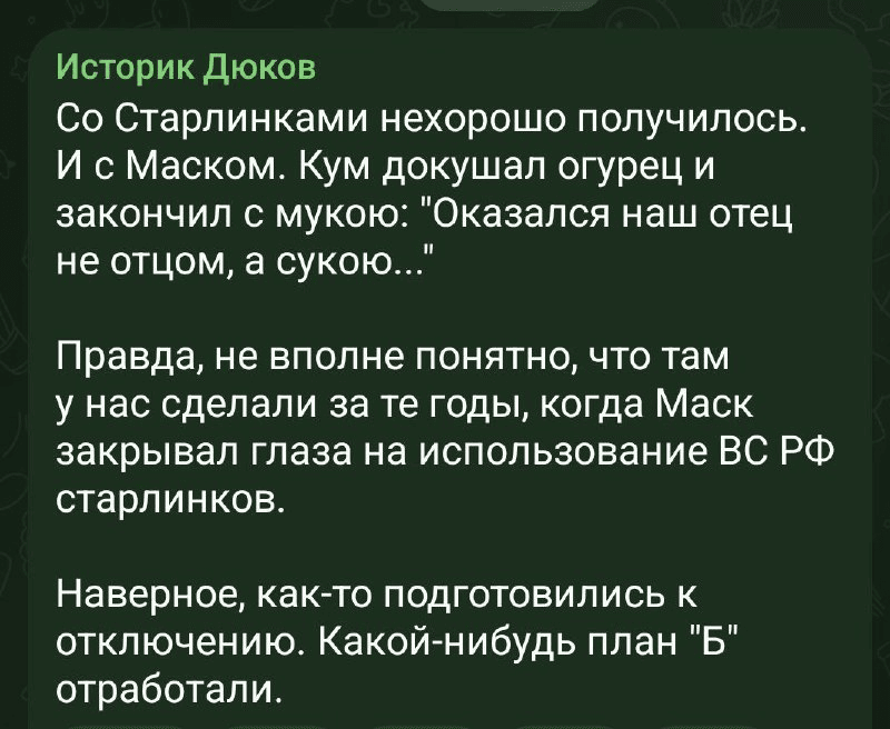 Одразу після блокування Starlink для росіян у пропагандистських пабліках РФ почалась справжня істерика. «Гнів» окупантів був спрямований безпосередньо на самого Ілона Маска.